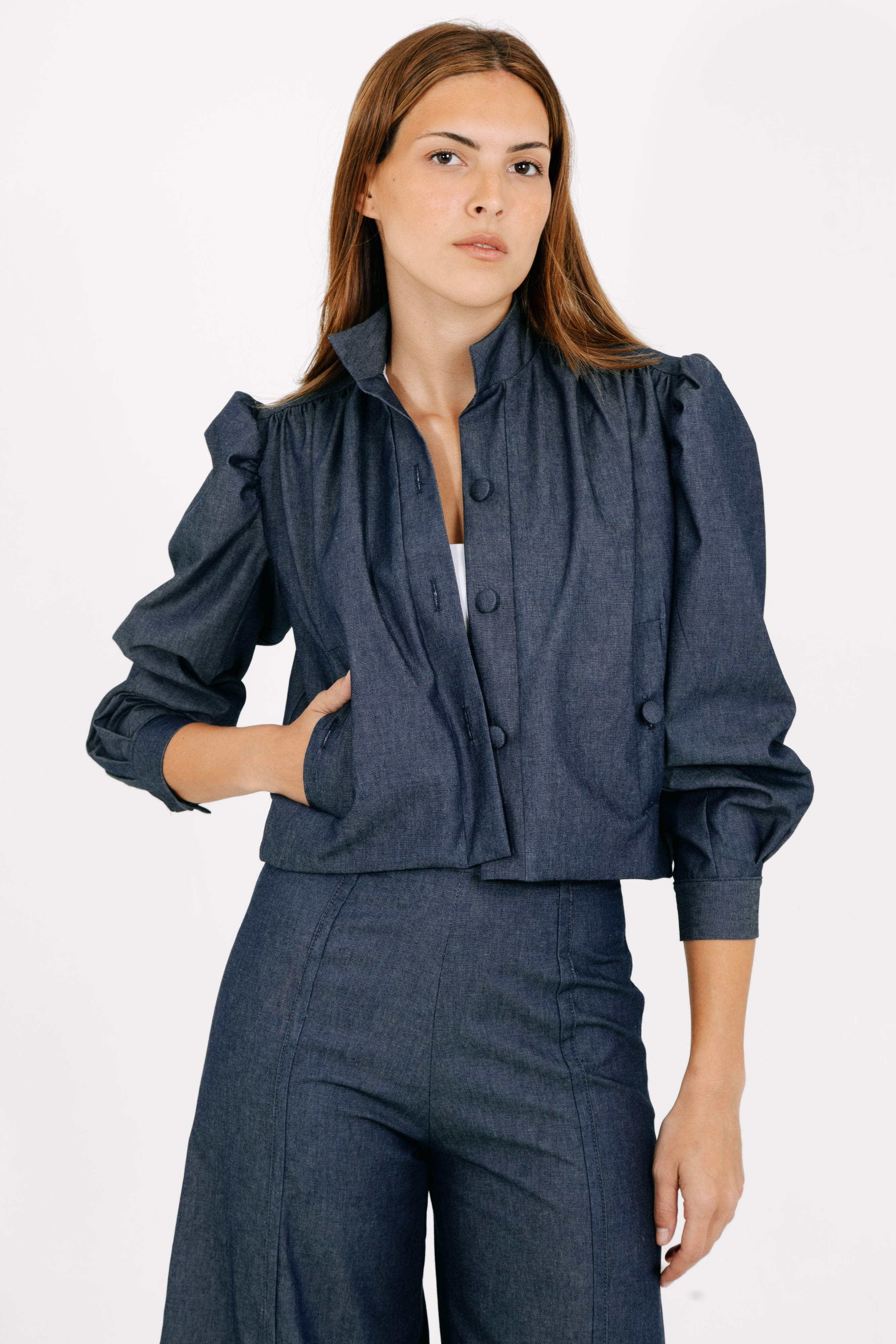 This button-front jacket offers a refined take on a classic silhouette, combining clean structure with everyday ease. Designed with a straight, slightly cropped fit, it features a traditional collar and a polished, tailored feel that works effortlessly across seasons.