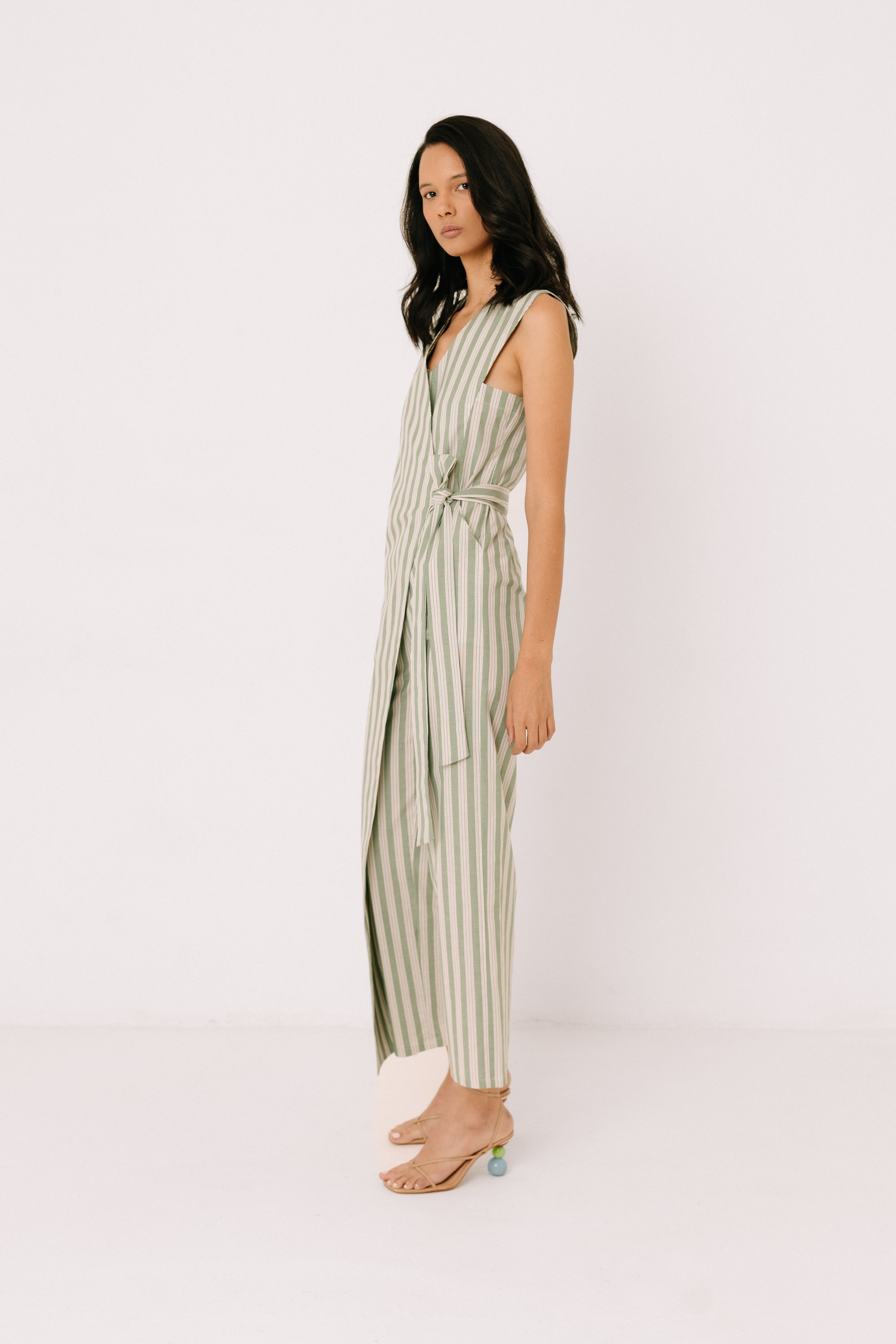 Elegant and effortless one-piece jumpsuit designed to elongate the silhouetted. Versatile enough for day events or evening occasions.