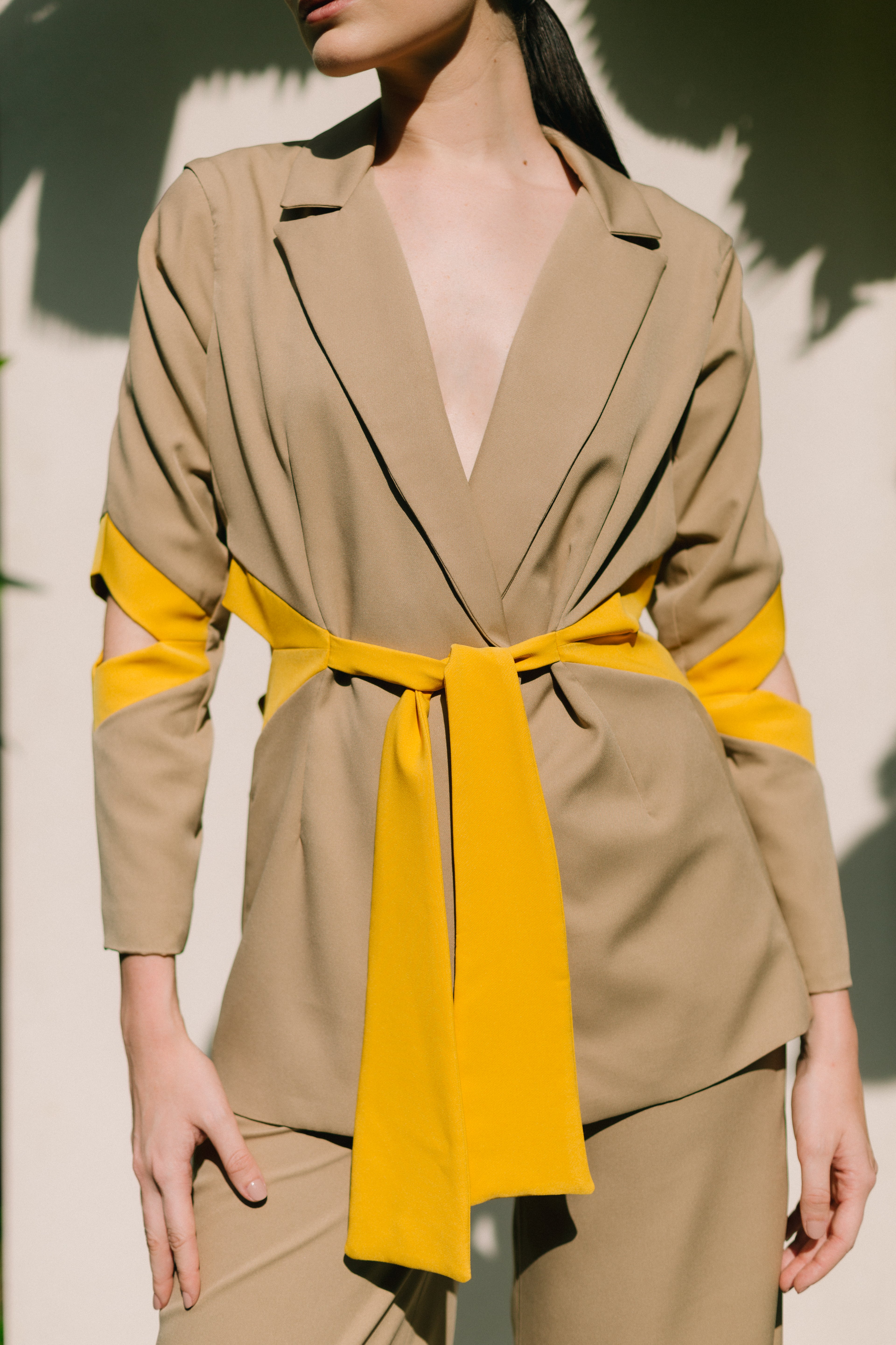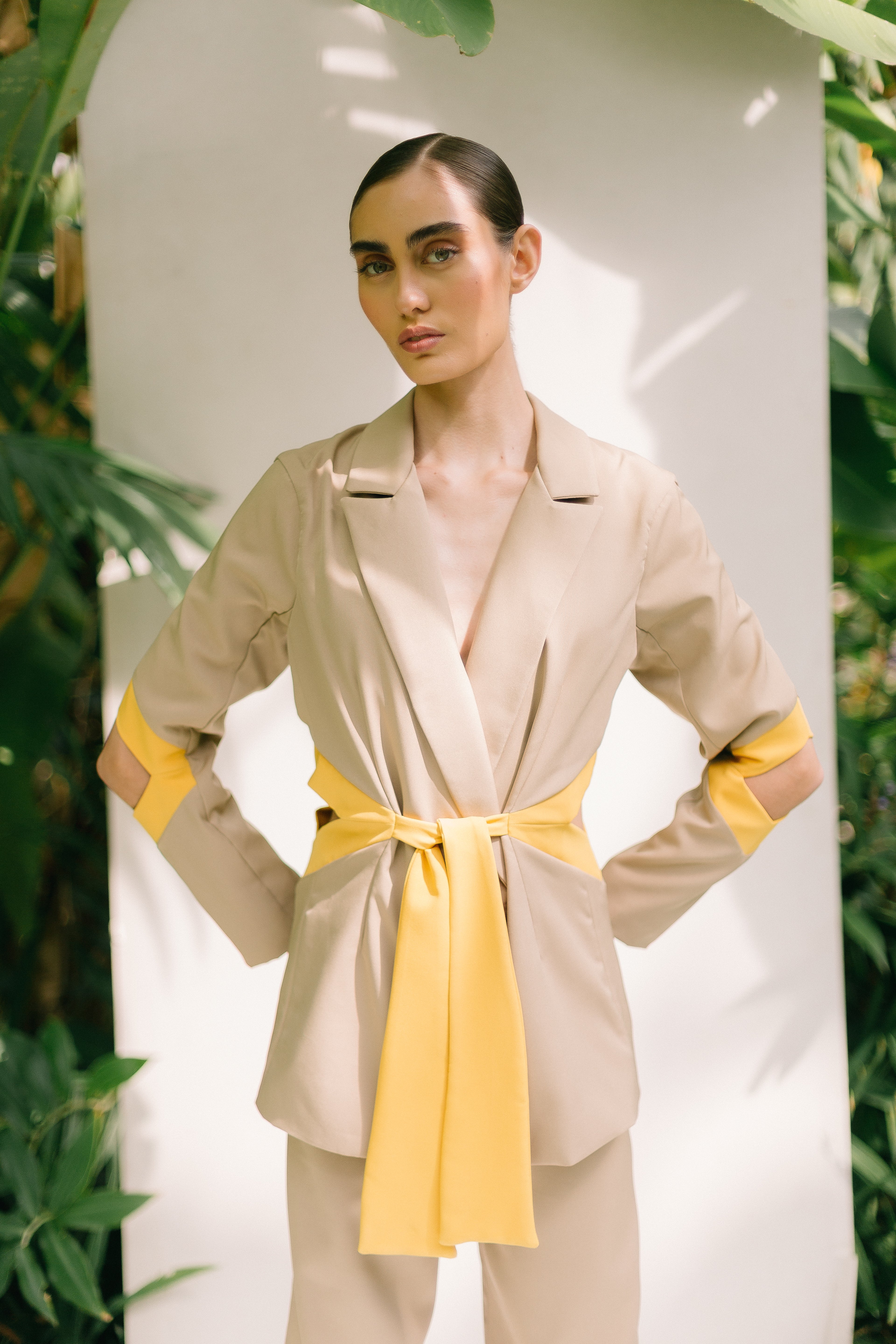 Indulge in the allure of our Two Tone blazer, meticulously designed with captivating cutout details at the waistline and elbows. The intricate craftsmanship of this blazer sets it apart, elevating your style to new heights and commanding attention wherever you go.